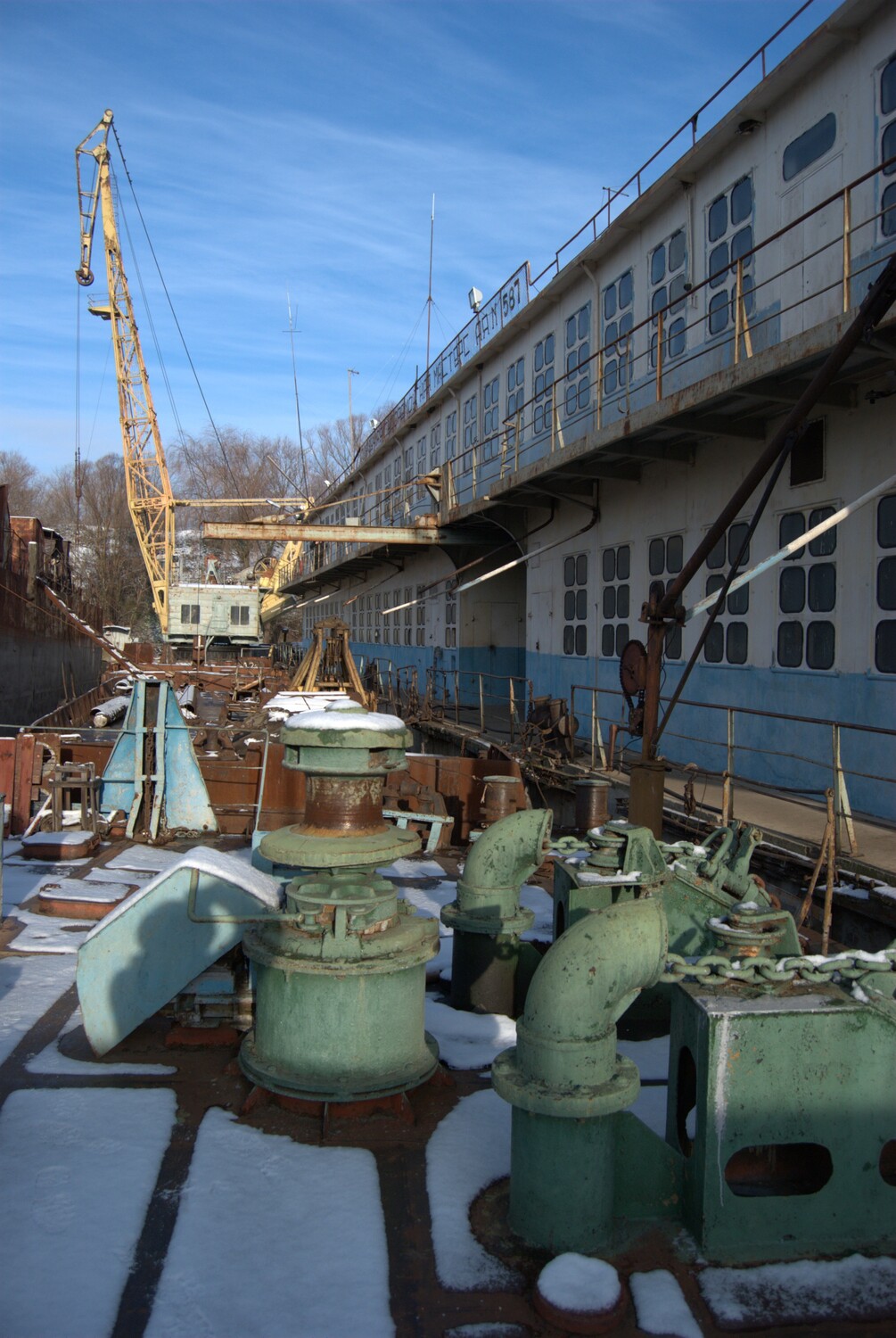 Complicated metal constructions, ships, platforms, vehicles, workpieces, etc. Winter season, gloomy weather, dangerous environments!
