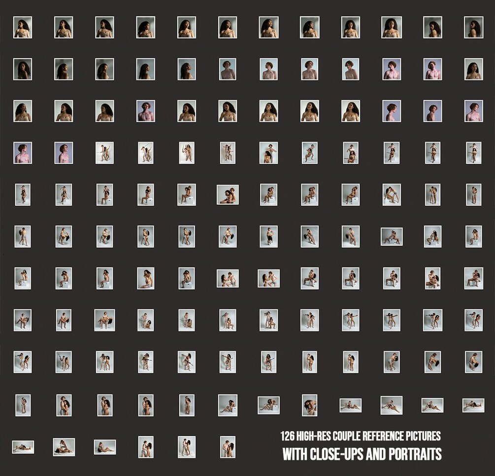 Our new pack includes over 100 high-res couple reference pictures with portrait close-ups. We have selected some popular character interaction poses for illustration and concept art. It will be a great pack for creating promo art, anatomy and portrait studies. Check out the previews!