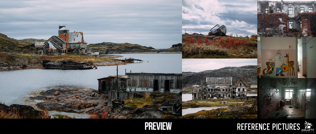 These references are perfect for studying how nature slowly takes over man-made structures, how materials age over time, and how light interacts with empty spaces. Cracked roads, rusted vehicles, overgrown buildings, and quiet natural locations give you everything you need to design believable worlds with history.