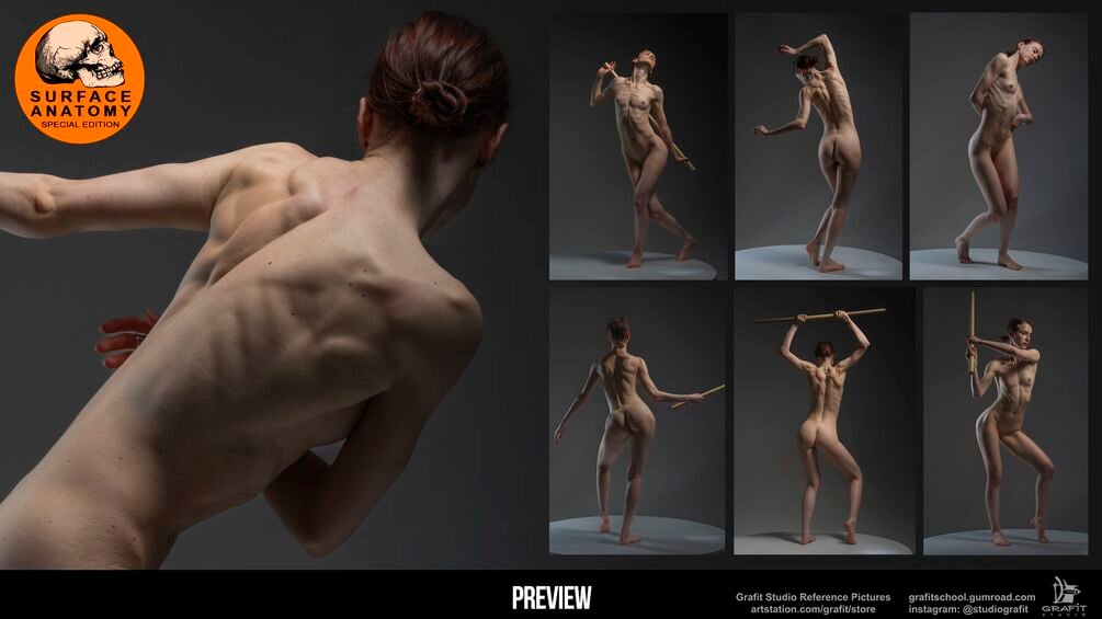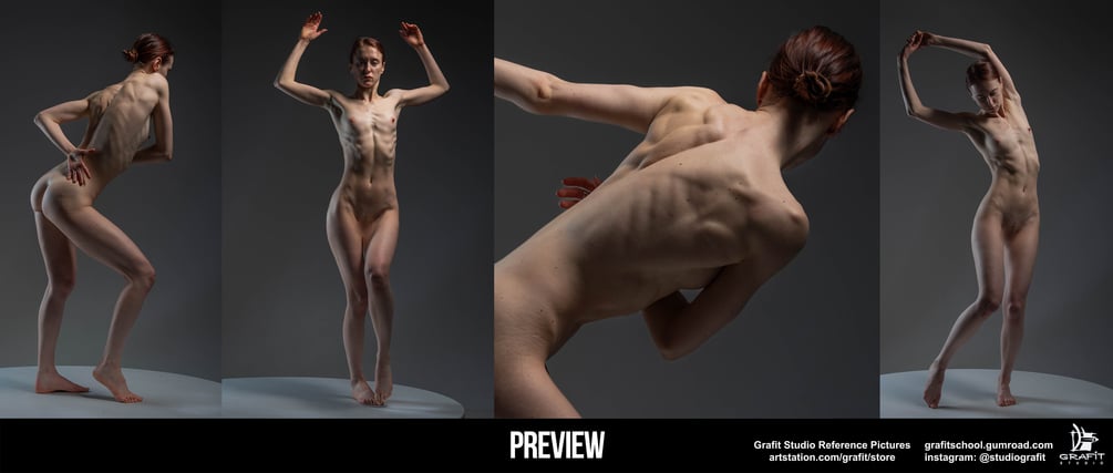 This extensive collection offers 585 high-quality reference images showcasing the female back and upper body anatomy. Featuring a variety of poses, including dynamic twists, stretches, and tension-filled movements, this set is an invaluable resource for artists, animators, and designers. Each image highlights detailed musculature and form, allowing a deeper understanding of muscle structure, posture, and natural movement. Perfect for refining anatomy studies or adding realism to your creative projects.