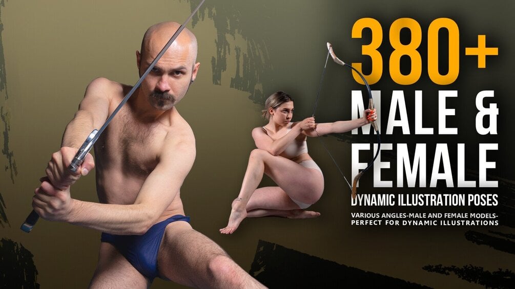 We compiled some of the most dynamic poses, including both female and male ones in our new release. It's a perfect tool for creating splash art, dynamic illustration and studying how the human body works in complex poses.