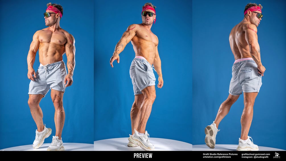 1450+ Sporty Ken Male Poses is a reference photo pack that captures the dynamic energy and versatility of an athletic male model in a wide range of sports-inspired poses. Featuring over 1450 high-resolution images, this collection is perfect for artists, illustrators, and designers looking to enhance their work with authentic and expressive male figure references. The model showcases a variety of athletic movements, including running, jumping, lifting, stretching, etc. Every pose emphasizes muscle tension, balance, and action, providing essential details for anatomical studies, dynamic character design, or sports-themed artwork. This pack is ideal for anyone creating realistic depictions of active male characters or exploring athletic aesthetics in their projects. The pack contains A-poses and T-poses without clothes.