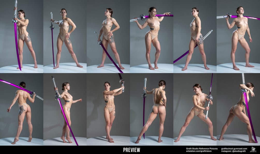 "1000+ Warrior Girl with a Sword" reference pack is extensive pack includes over 1000+ high-quality images of a strong, athletic female warrior in a wide range of dynamic poses. It's an ideal resource for artists focused on character design, anatomy studies, or capturing realistic motion and expression. With a variety of angles, this collection offers everything you need to bring powerful female characters to life. Perfect for leveling up your art and finding fresh inspiration.