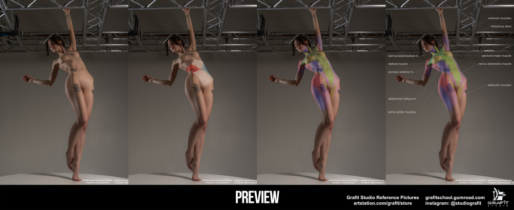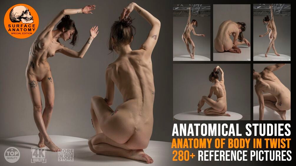This comprehensive collection features over 280 high-quality reference pictures focusing on the anatomy of the body in various twisted poses. Perfect for artists, animators, and designers, these images provide an in-depth look at the human form in dynamic and challenging positions, enhancing your understanding of muscle structure and movement.