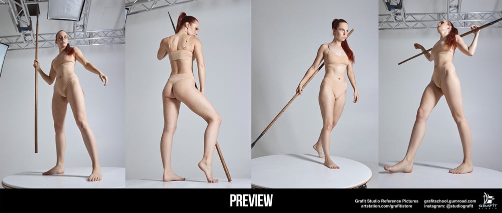 Inside, you’ll find high-quality reference images showcasing poses, weapons, and key physical features of the Warrioress. These images are perfect for studying anatomy, proportions, and dynamic movement.