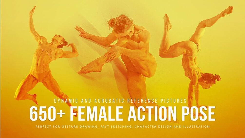 This pack features over 650 high-res action reference pictures. The pack includes T- and A-poses, as well as a full range of dynamic reference pictures that will be a great tool for studying anatomy, gesture drawing, character design and more. The poses include jumping, running, fighting and laying down. Check out the previews!
