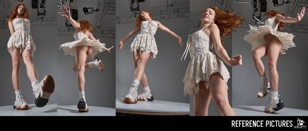The model is very active throughout the session, moving with energy and variety. You’ll find standing, sitting, crouching, and dynamic gesturing poses, shown from different angles and perspectives. The flowing dress adds extra motion and creates interesting shapes, giving more depth to the references 🌺