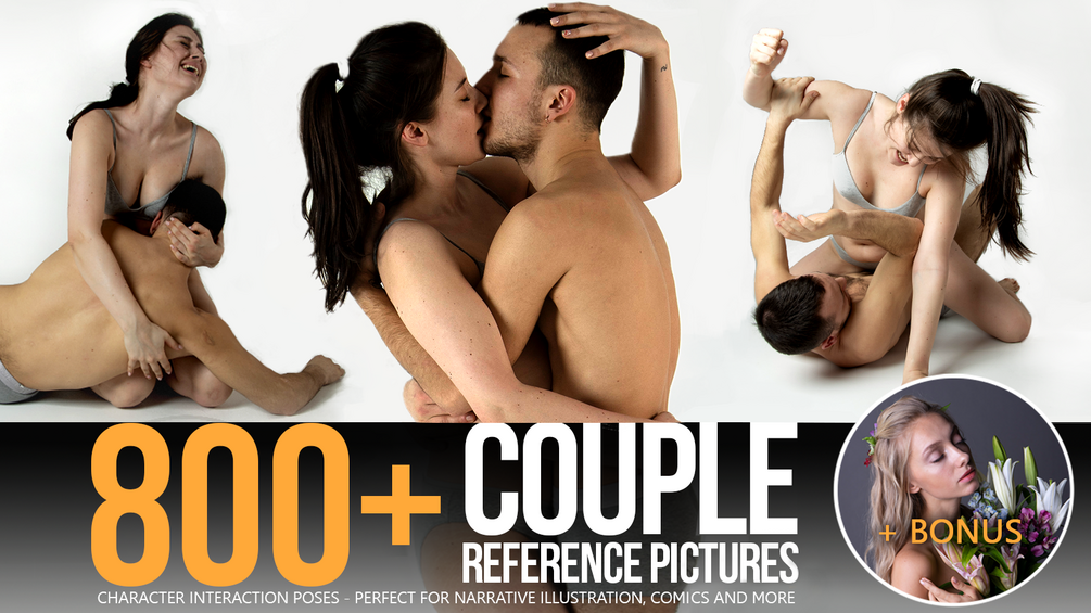 This release features over 800 reference pictures with all kinds of couple poses and character interaction - dancing, fighting, casual everyday activities, as well as portrait closeups! It's a very versatile pack for illustration, character design, comic art, and more!