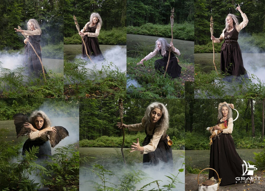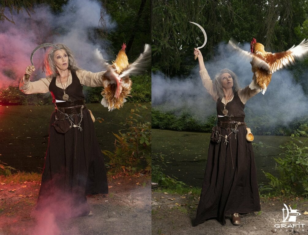 Hi friends! Time to share our craziest refpack project, featuring our amazing model Marina who helped us create this witch character! Fall is upon us, which means you'll soon be in a mood for all things spooky - we have something that might inspire you. This bundle has BOTH outdoor shots, as well as the studio ones. The outdoor part of the photoshoot was made with the flash, which allowed us to have a very high-res, sharp pictures. The rooster part is explained in one of the previews, but to put it shortly - he most likely is gonna be a father to little chickens, than a soup, as it was meant to be at first. Hope you enjoy it as much as we did shooting it!