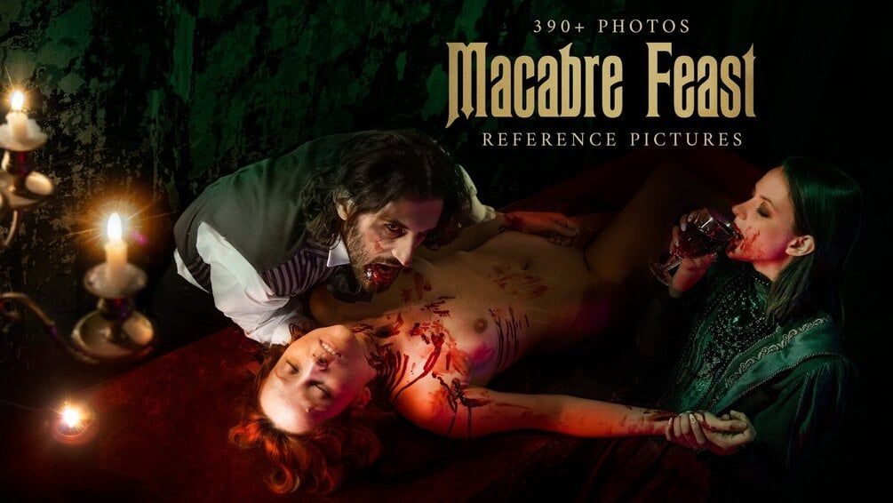 Hi guys! It's the scariest time of the year and we have something that might inspire you! The set includes themed couple poses, astonishing costumes, gothic characters, vampire feast scenes, dramatic lighting, atmospheric interiors and facilities and more! We also have included some portrait close-ups with character expressions and different lighting. It will be a great tool for creating character design, concept & comic book art, illustration and studies. Check out the previews!
