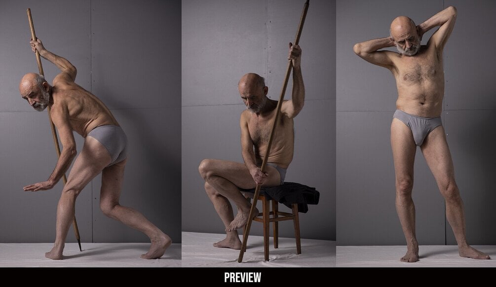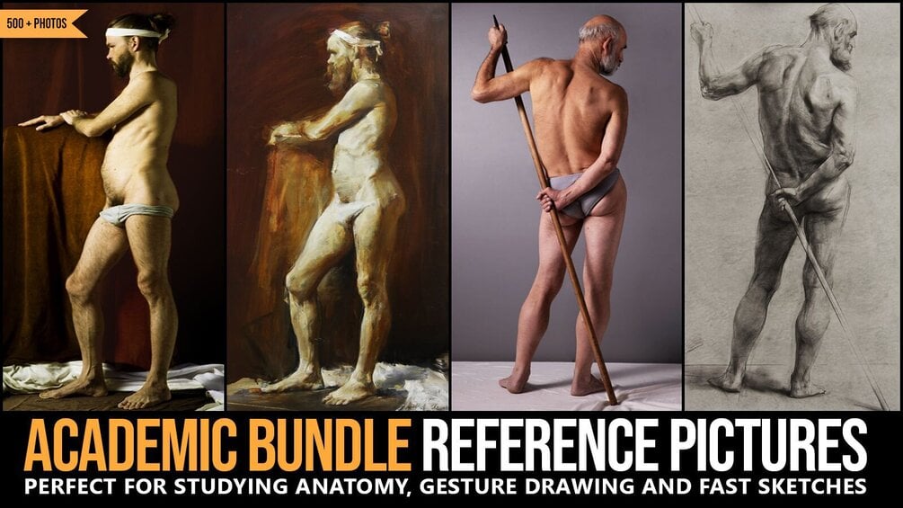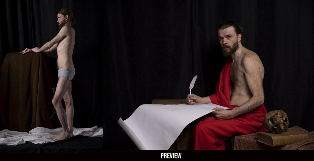 We have created a reference pictures set that features models who have been posing for academic figure drawing classes at Saint Petersburg Academy of Arts for many years. The pose choice was also based on art school assignments for drawing and painting training, so you can have an opportunity to practice your figure drawing with the same models who posed for many prominent Russian artists. The pack features 3 different male models with standing, sitting and lying poses, as well as some portraits and close-ups. Check out the previews!