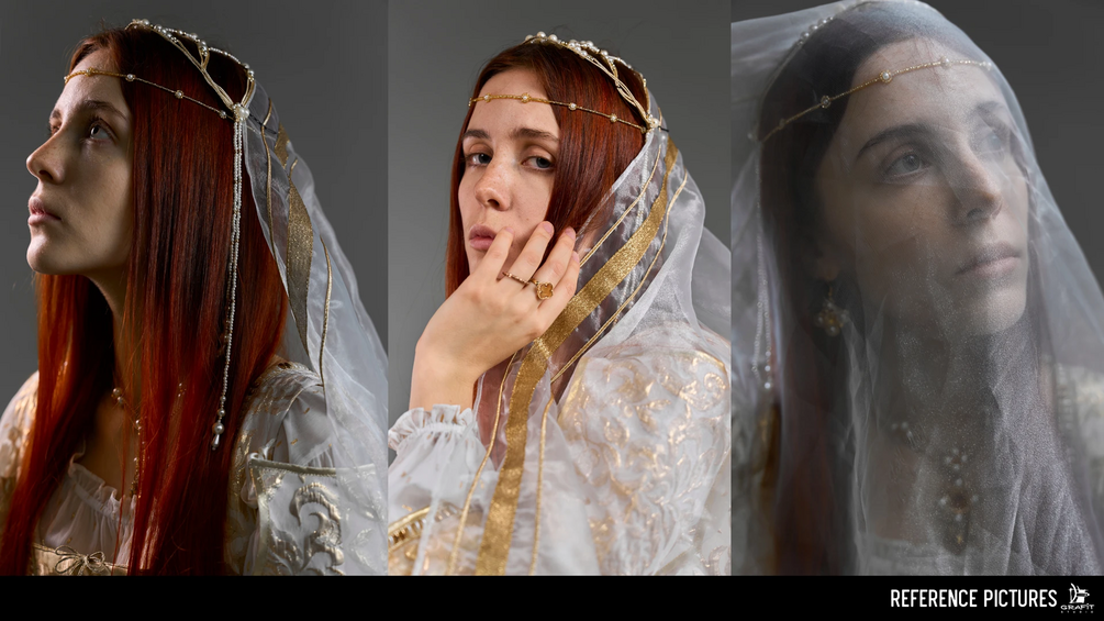 Drawing inspiration from the elegance of Tudor England, this collection features over 1,400 reference images of women draped in stunning Tudor gowns. Each photo beautifully captures the timeless allure of the era, highlighting intricate embroidery, luxurious fabrics, and majestic silhouettes. These images offer a window into the fashion and beauty of a captivating historical period. Whether you’re creating historical art, designing costumes, or simply exploring the romance of the past, this pack will enrich and inspire your creative work! This pack also offers advantages such as complex angles and close-ups of authentic jewelry and fabrics.
