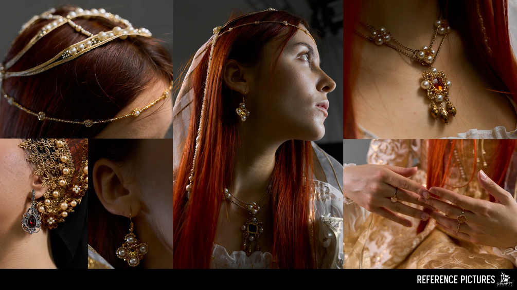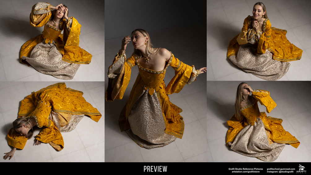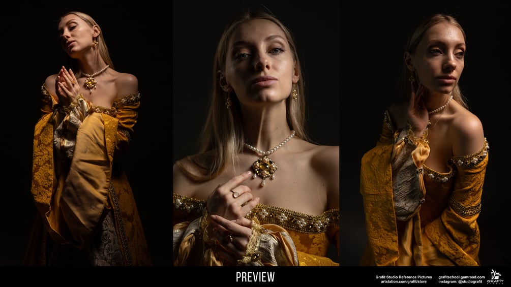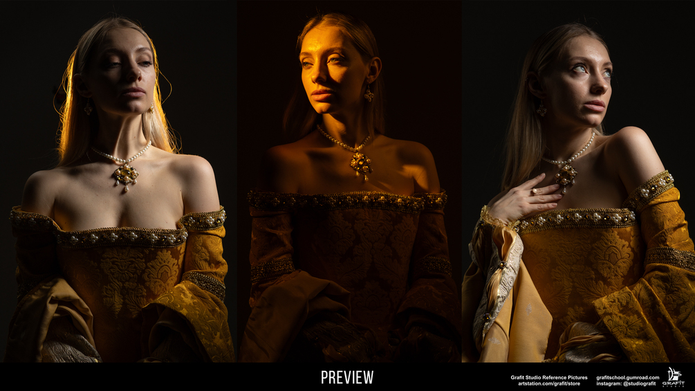 Drawing inspiration from the elegance of Tudor England, this collection features over 1,400 reference images of women draped in stunning Tudor gowns. Each photo beautifully captures the timeless allure of the era, highlighting intricate embroidery, luxurious fabrics, and majestic silhouettes. These images offer a window into the fashion and beauty of a captivating historical period. Whether you’re creating historical art, designing costumes, or simply exploring the romance of the past, this pack will enrich and inspire your creative work! This pack also offers advantages such as complex angles and close-ups of authentic jewelry and fabrics.